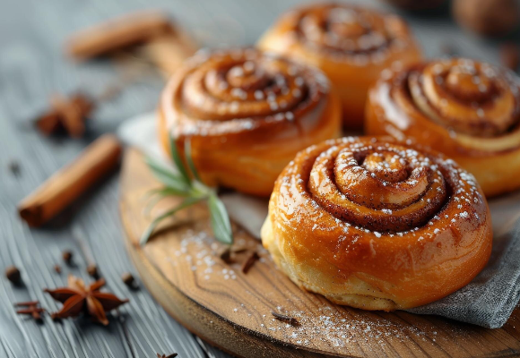 Sweet, fluffy pastry with warm spice.