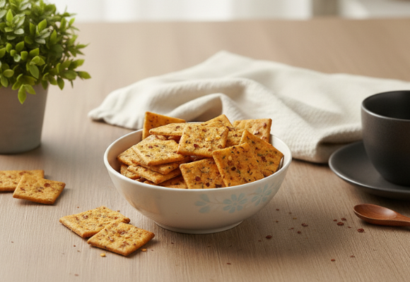 Crisp crackers with savory depth.